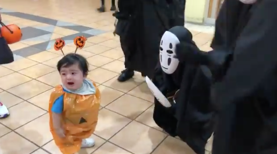 只能說小孩子參加萬聖節變裝派對時還是要做好心理準備,不然以後很可能會對萬聖節留下陰影呀!!