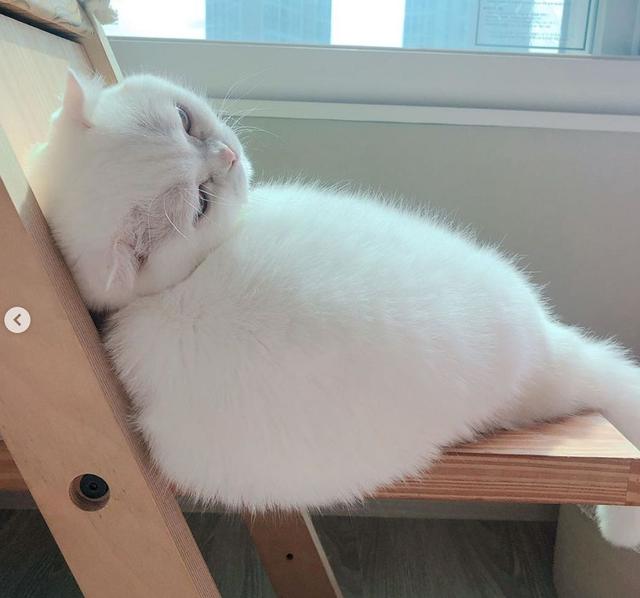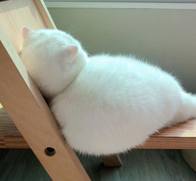 ▼快看這一團麻糬…啊不是,這一坨…這一隻綿綿軟軟的白貓平常的休閒除了吃跟睡以外就是在窗邊曬太陽,這背影真的好療癒!