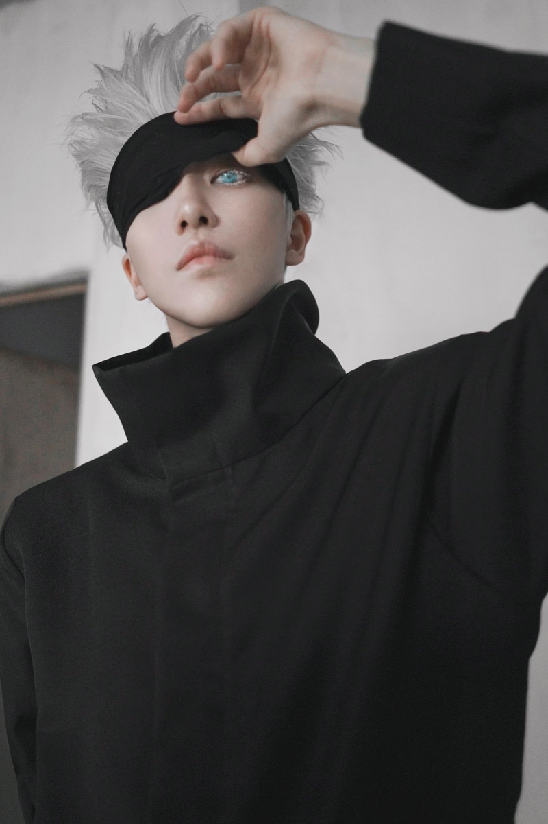▼這位COSER穿著一身黑衣,戴著面罩,還留著一頭特徵十足的銀髮,簡直就像東京咒術高專一年級班級導師「五條悟」從二次元中走出來了一樣。