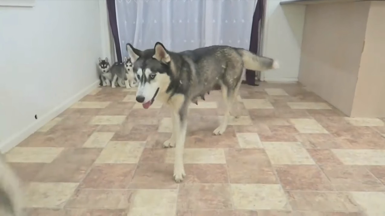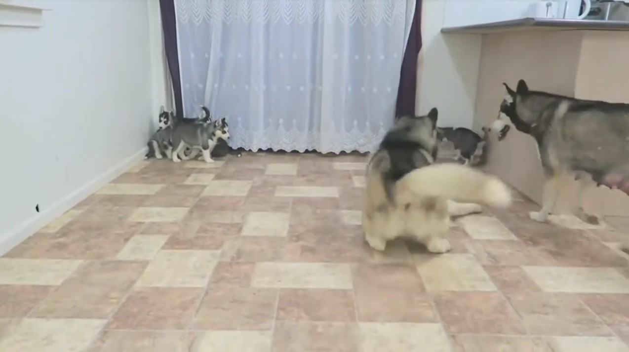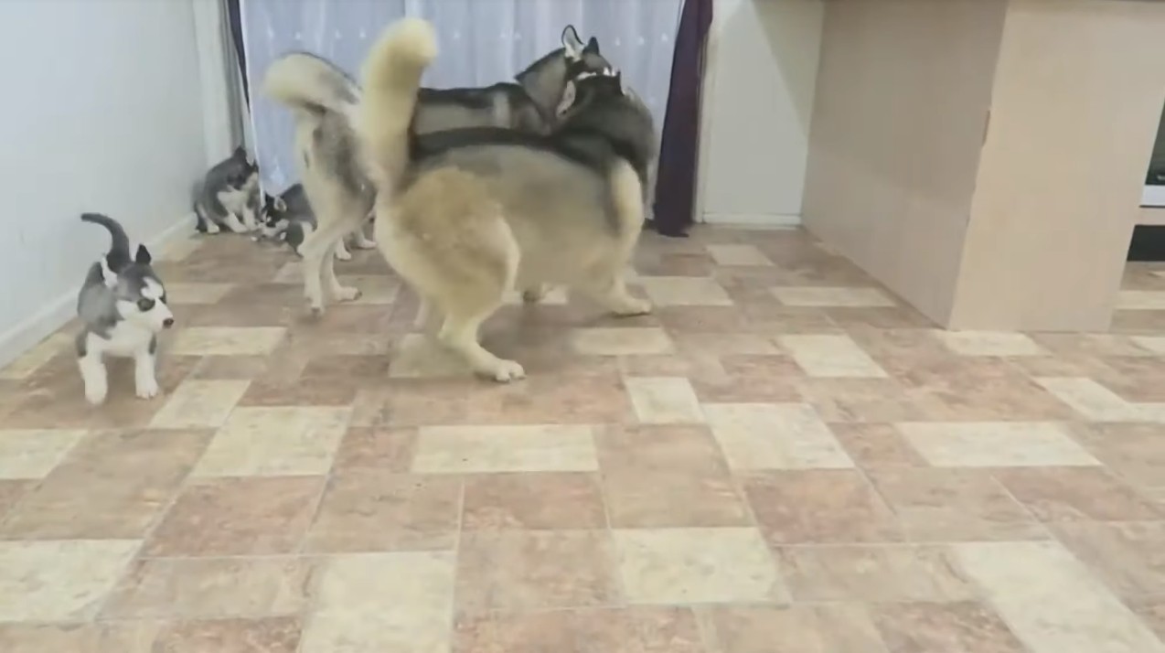 ▼當家長離開以後,這群小哈士奇也玩開來了,看來這位主人真的需要很有耐心才能飼養那麼多活力充沛的哈士奇寶寶!