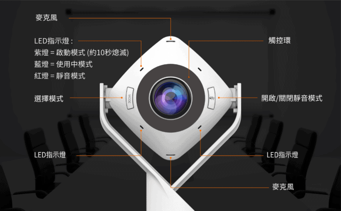 JVCU360 是針對中小型會議空間打造的專業級視訊會議解決方案,除了提供 1080p 高畫質清晰影像,並可一鍵切換六種顯示模式:360° 全螢幕/全景模式、單/雙主持人模式、90°/120° 視角模式,透過獨家專利觸控環,就能迅速調整影像視角、聚焦會議主講人,滿足各種不同類型的會議需求,帶來高品質的會議溝通效果。