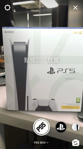 - 用家只需點撃一下便可將 PS5 的盒子放在該位置,並且可以透過雙指進行放大縮小以及左右轉動。