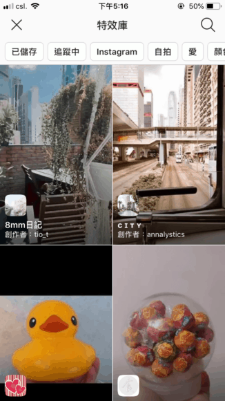 - 進入特效庫後按右上角的放大鏡搜尋。