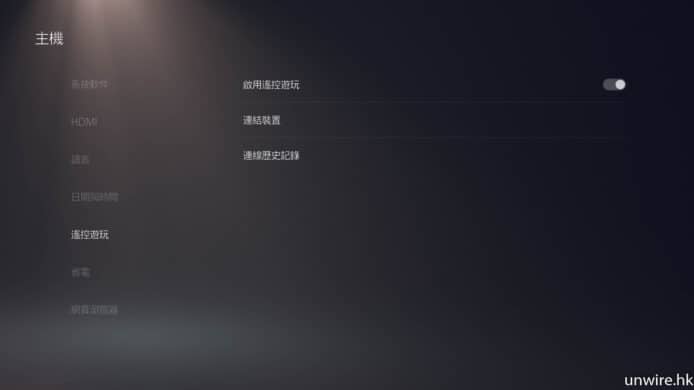 進入「主機」頁面後,點選第五個選項「遙控遊玩」,之後開啟「啟用遙控遊玩」。