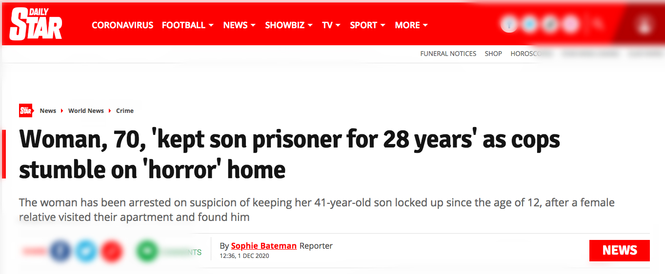 而面對媒體的採訪,老太太則表示自己才是受害者,之所以把兒子留在家裡,是為了來「保護」他。「我們過著非常艱難的生活,我的孩子們在童年時期都見過我被他們的爸爸虐待,以後的日子我們十分需要幫助。」