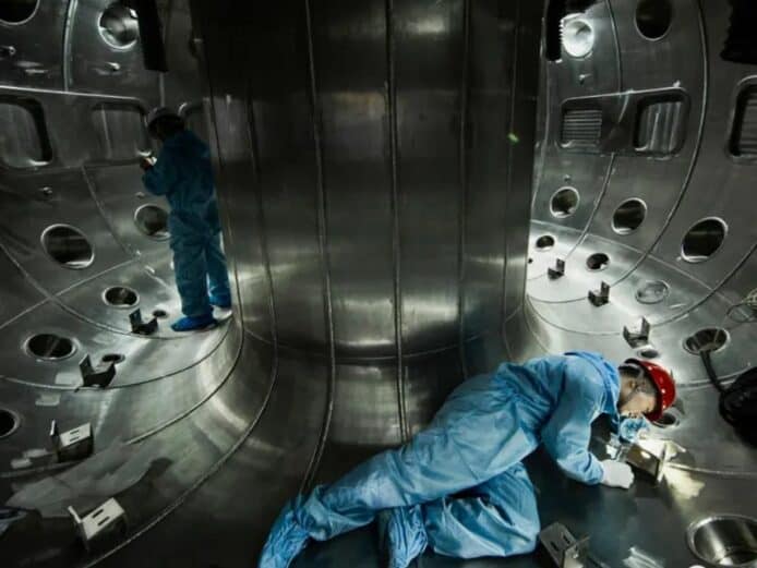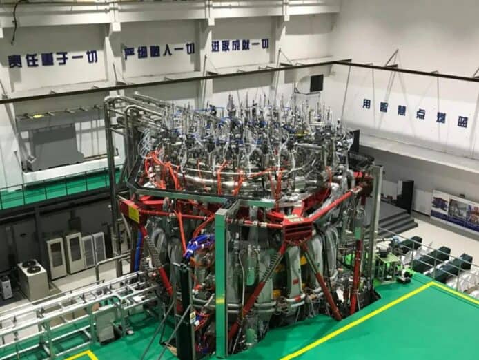 報道稱,HL-2M 是實現中國核聚變能源開發事業跨越式發展的重要依託,也是中國消化吸收國際熱核聚變實驗堆(ITER)技術不可或缺的重要平台。從技術上來說,中核集團的反應器,由 20 組環向場線圈中心段組件,和中心螺旋管線圈裝配而成,總體重量約 90 噸,因產生能量的核聚變原理與太陽光的原理相似,也被稱為「人造太陽」。