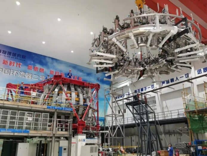 報道稱,HL-2M 是實現中國核聚變能源開發事業跨越式發展的重要依託,也是中國消化吸收國際熱核聚變實驗堆(ITER)技術不可或缺的重要平台。從技術上來說,中核集團的反應器,由 20 組環向場線圈中心段組件,和中心螺旋管線圈裝配而成,總體重量約 90 噸,因產生能量的核聚變原理與太陽光的原理相似,也被稱為「人造太陽」。