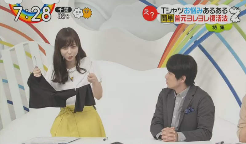 接著節目組就找到洗衣專家神崎健輔,他表示T恤的領口之所以會變鬆,無遺是在曬衣服的環節上出了問題,因為棉質的衣服如果不好好晾曬,很容易就會變形,不過大家不用擔心,只要簡單幾個步驟,就可以讓最愛的T恤恢復原樣!