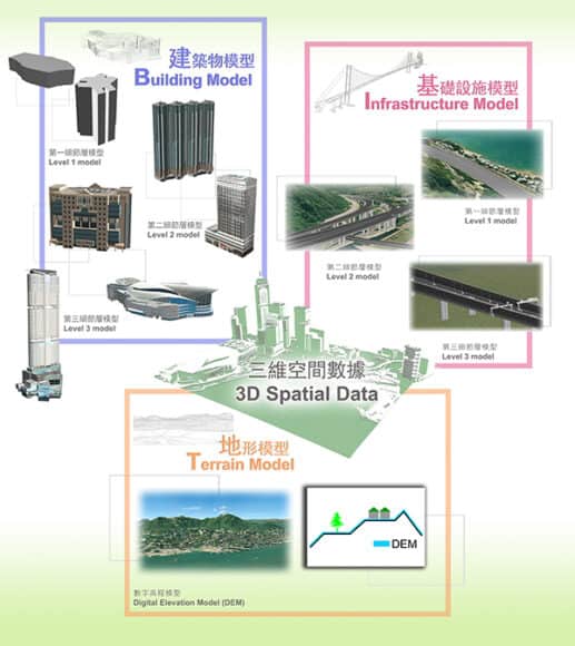 據署長陳松青指,3D 城市地圖覆蓋範圍包括香港島、九龍及早期發展的新市鎮(例如沙田、荃灣、葵青、屯門、大埔等),並會上載到「香港地理數據站」,透過傳感器搜集得來的數據,如溫度、風向、噪音等,都能有效地融合於地圖,並開放予公眾使用。覆蓋範圍隨後會推展至其他地方包括大嶼山等,目標是於 2023 年底前完成整個香港三維城市地圖。