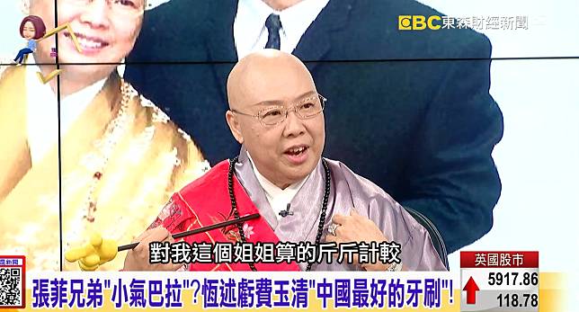 70歲的恆述法師日前開記者會交代債務始末,透露獲「神豪」斗內,現已「無債一身輕」,更左虧弟弟張菲是「台灣省長」、右批費玉清「一毛不拔」,稱兩人日進斗金,每月卻只各給她5萬零用錢。沒想到大陸網紅「帝師」近日開直播稱,媽媽傳了訊息給他,內容竟是「費玉清癌症已經擴散」,還說他命危,律師已到場並進到病房記錄遺囑,「他剛64歲,我在旁邊」。消息一出,許多網友傻眼追問真假,他表示不清楚,強調就是媽媽說的,不過「費玉清癌末」傳聞,隨後還是在微博上引發熱議。