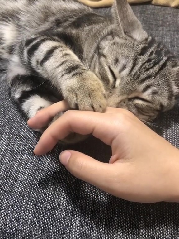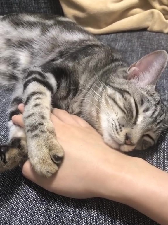 如此軟萌又霸氣的撒嬌,簡直讓人無法抗拒,網友們看了紛紛被萌到手指蜷曲:「要抱著主人手才肯睡也太可愛~」、「羨慕!哪像我家的貓睡覺時是絕對不能碰的w」、「可愛的貓都是別人家的~」、「好像小寶寶一樣」、「過分可愛了~」、「牠很明顯在表示:不准離開我!」、「要我肯定捨不得把手給移開」、「好想直接把牠抱在懷裡睡!」。(影片記得開聲音更可愛喔~)