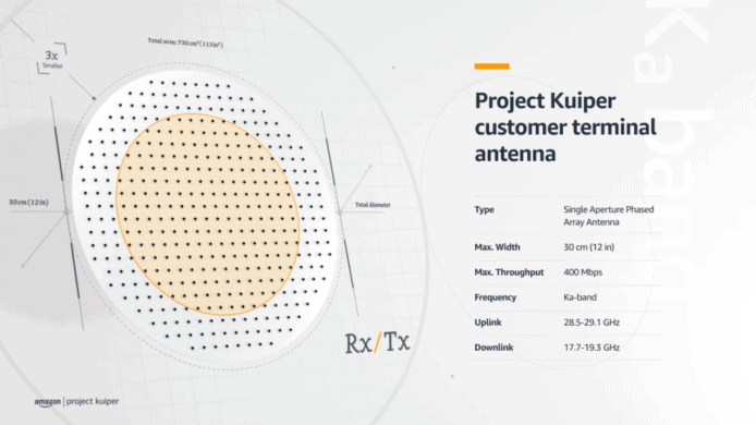 近日,Amazon 宣布完成 Kuiper 衛星的終端 Ka 波段相位陣列天線開發及測試。有別於以往 Ka 波段天線尺寸與重量都偏大,Amazon 利用纖巧的天線單元結構,將發射天線與接收天線重疊在一個只有約 30cm 寬的盤中,縮小了天線尺寸近 3 倍並降低成本,直徑只有 12 英吋(約 30cm)。而目前,天線原型測試速度已經達到 400 Mbps,而且能夠順利接收來自地球靜止軌道衛星的 4K 影片訊號,相信經過調整之後應該可以更快。