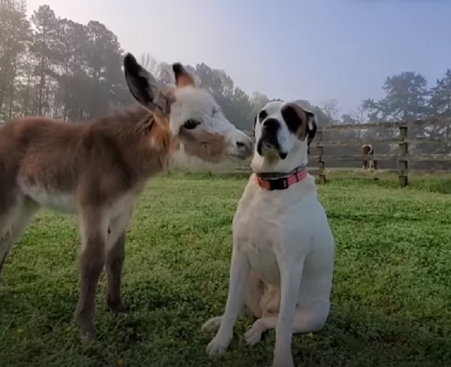 ▼Willow出生時Colton正好在旁邊,牠一下子就被這隻剛剛來到世界上的驢寶寶吸引,忍不住跑過去給了牠一個吻。驢媽媽非常警惕,不許任何人、任何動物靠近自己的小孩,但隨著時間的推移,Willow還是找到機會跟Colton成為了好朋友。