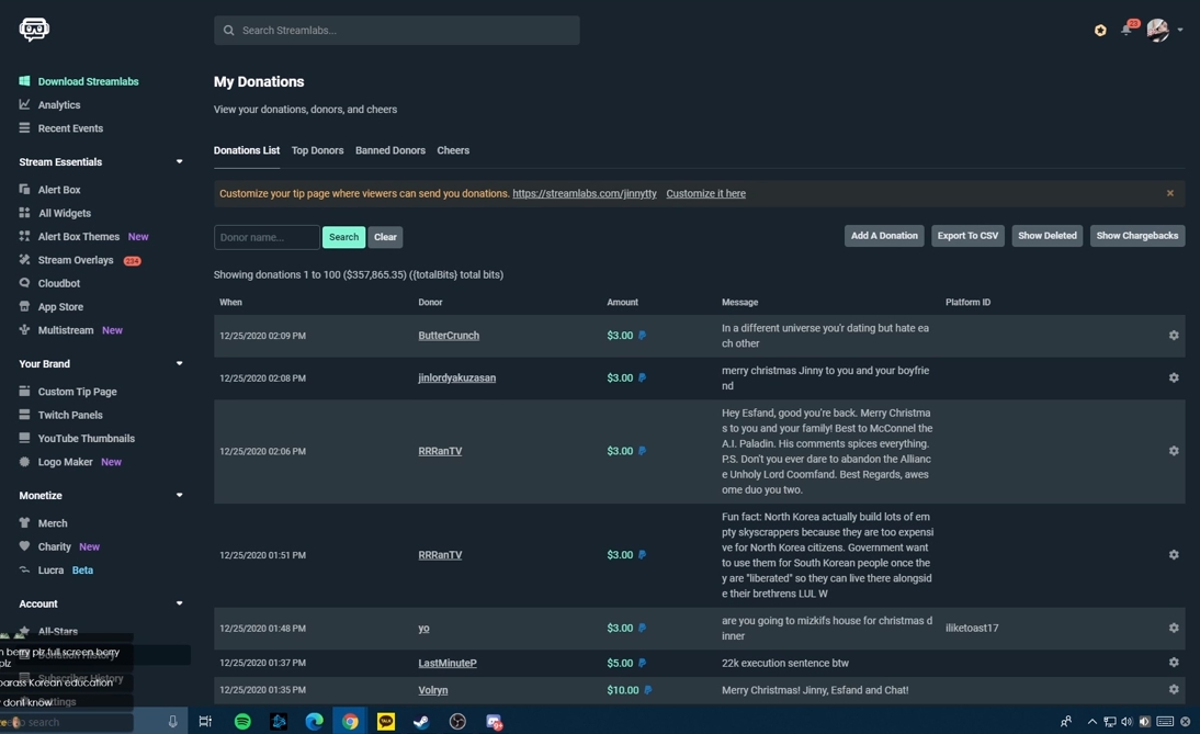 一名網友在PTT的八卦版上發文並PO出了企鵝妹的直播影片,表示「企鵝妹在實況不小心把抖內金額露出來了,抖內總共35萬7865鎂」,不過他也說明這影片是備份,原始片段已經被刪除了,「美國觀眾IP值錢,抖內又多,美金就是香」。