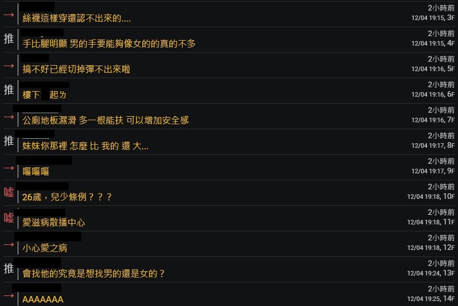 案件曝光後,引起許多網友熱烈討論,紛紛留言表示,「絲襪這樣穿還認不出來的....」、「手比腿明顯 男的手要能夠像女的的真的不多」、「會找他的究竟是想找男的還是女的?」、「看腿就知道是男的了」、「知男而上?」、「偽娘市場超大好嗎」。