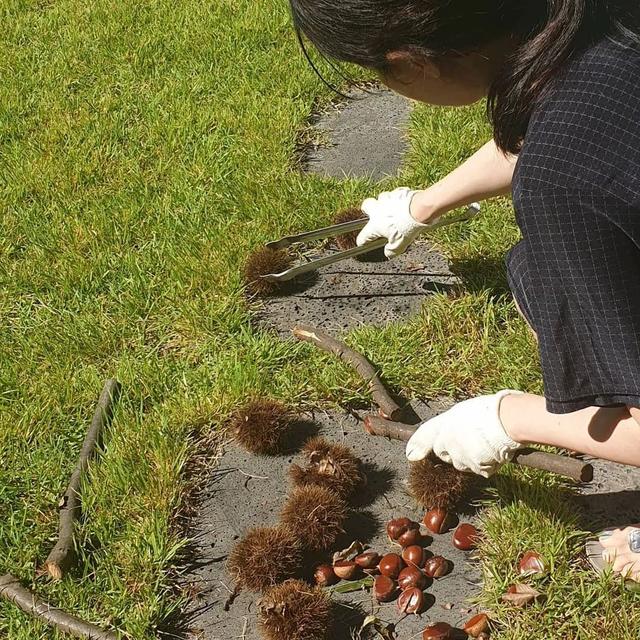 秋季溫度正好,母子三人就會帶上竹籃,騎著單車去林間撿板栗,就近來個秋遊。
