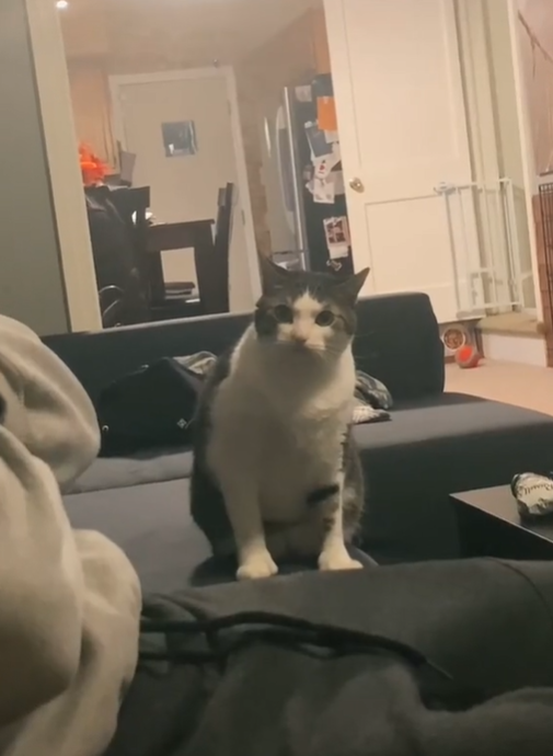 影片中只見貓貓動不動就跑去找把拔撒嬌討摸,偶爾還一臉挑釁地看向馬麻,那宣示主權的表情就好像在說:「這男人是我的!」看到老公和貓咪每天在光天化日之下曬恩愛,實在是讓馬麻哭笑不得,她也在影片中表示:「你的貓搶走男人的機率很低,但絕對不是0…」