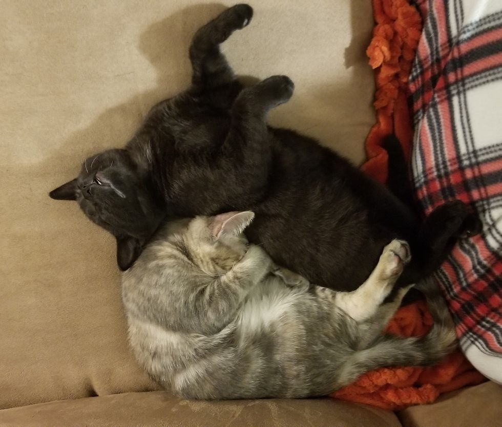 ▼開朗的Betty很快適應了新環境,Munch則更加粘人了。牠很喜歡被摸摸、被抱抱,主人超愛牠。現在Munch已經長到了2.5公斤重,跟同齡的貓咪差不多,不再是以前的小可憐了。