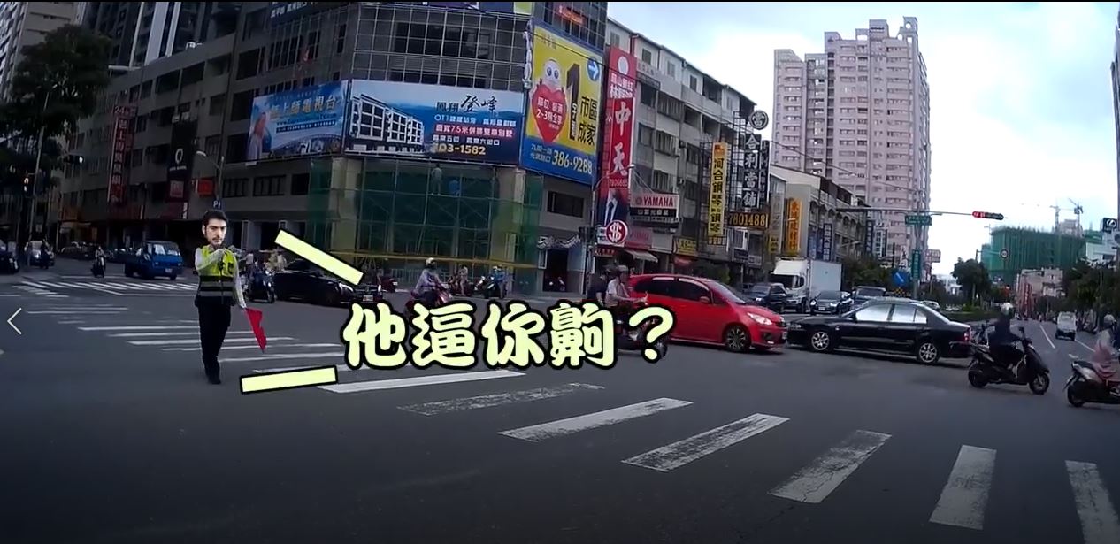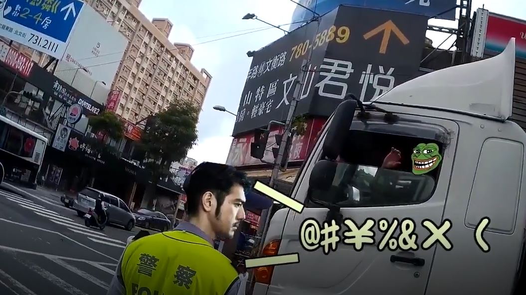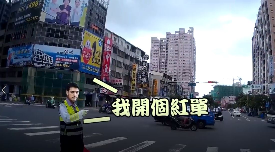他心裡想說「難道是想紅燈右轉嗎?」,突然眼前的交通警就現身神救援,還先問騎士「他逼你車吼?」,騎士點了點頭,警察就霸氣對貨車司機開紅單,然後還再把司機罵了一頓,最後警察大步的走開,留下帥氣的背影,騎士最後還很用心把影片後製,曝光在網路上,點閱率達到21萬,許多人都大讚警察有夠霸氣!
