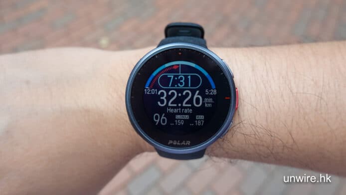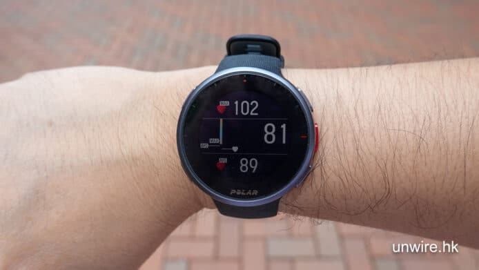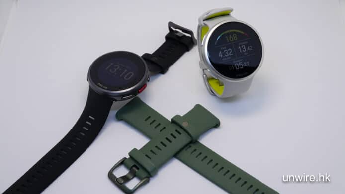 針對用戶戴住去跑步、踩單車甚至行山跑山,智能運動手錶當然愈輕愈好,不會覺得手上有任何負擔,而且也要在輕巧之餘亦有一定的堅固性能,才可以應付不同情況下的需要。Vantage V2承繼上代的圓形錶身設計,以航空鋁合金配上玻璃纖維強化聚合物製作(更有防水100m的規格),連矽膠錶帶也只是52g重,較上一代輕巧了14g之多(Polar Vantage V整錶重量為66g)。筆者戴上手後完全可感到其輕盈,甚至可以說是輕如無物一般。矽膠錶帶亦柔軟舒適,而且較上代更容易更換錶帶,用戶可選擇不同顏色的錶帶襯出自己喜歡的風格。