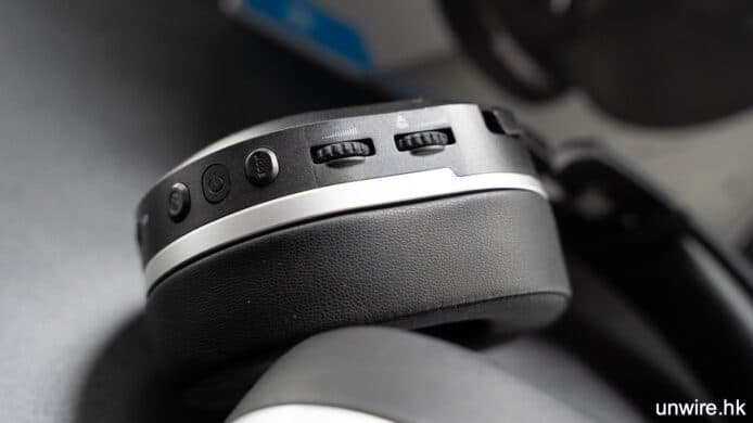 耳機同時支援以附屬的 USB 傳輸手指傳輸音訊資料,得到延遲更低的遊戲音效,而另一方面又支援 Bluetooth 藍牙連接功能,當你不想用這個 USB 手指,又或者連接沒有 USB Type-A 的裝置,例如 iPhone 或者 MacBook,藍牙模式就很有用。你可在耳機找到模式切換鈕,隨時切換兩種連接模式。