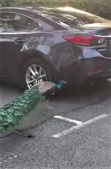 赫見車身「有另一個牠」!孔雀爆氣「卯起來刮車」成果網看呆:幫車主QQ