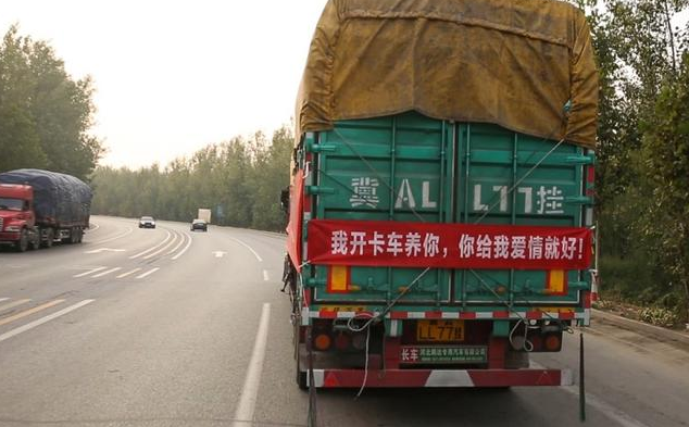 雲歌經常跑長途,從河北到西藏、雲南,一趟路程下來往往幾千公裡,有時候出一次車需要兩三個月。長期的旅途奔波,雲歌沒有時間談戀愛,至今仍然單身。「父母特別著急,總是催我。於是我就賭氣掛了一個橫幅,看能不能找到合適的男朋友。」