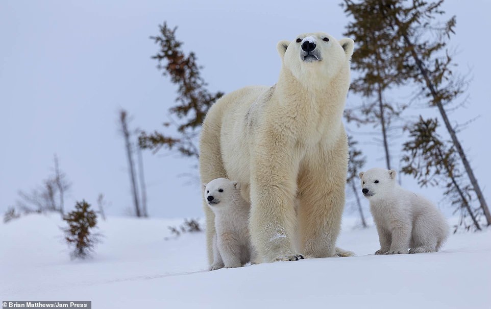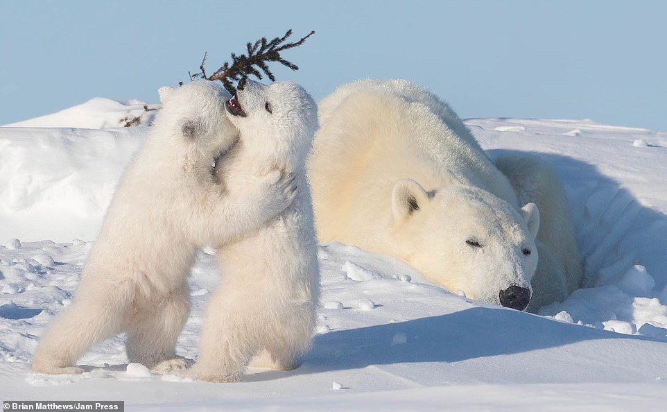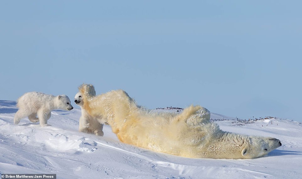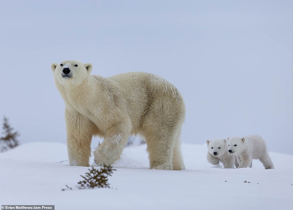 2021年01月18日北極熊是地球上最大的陸地食肉動物之一。牠們生活在酷寒的環境中,白色的外表在雪地中是最好的保護色。最近英格蘭達拉謨(Durham)42歲攝影師Brian Matthews和攝影團隊一起,在加拿大瓦普斯克國家公園中拍到了一組有趣的照片。北極熊媽媽帶著2隻小熊在雪地中嬉戲玩耍,那畫面看起來非常有愛。