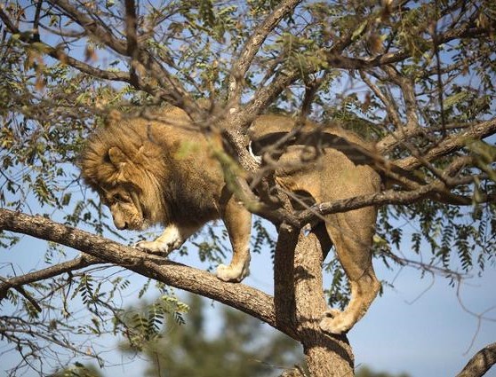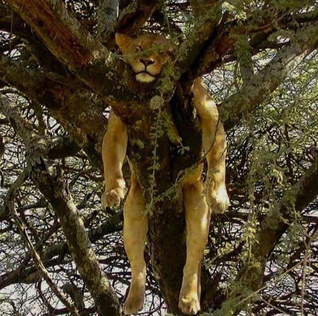 8.小心翼翼爬著樹的獅子有種呆萌感~