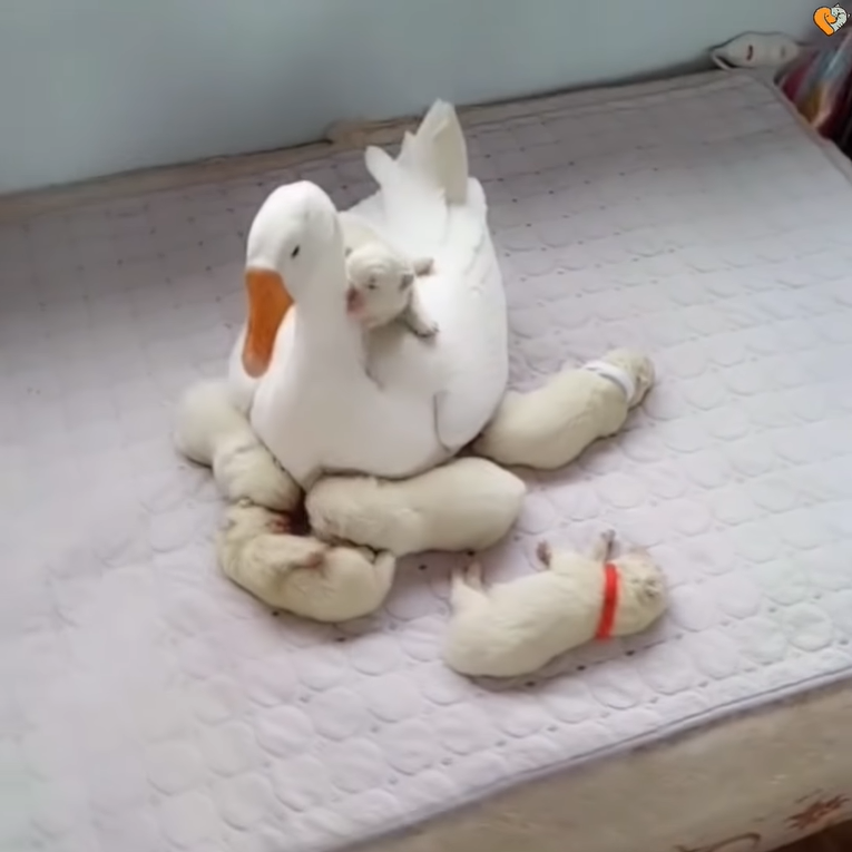平常飼主總會替家裡的寵物們紀錄日常,後來七寶和狗狗們的溫馨互動也被轉載分享出來,網友們看了都忍不住被萌了一把:「原來鵝鵝也這麼溫柔可愛!」、「沒想到跨物種也能展現母愛,真的太神奇了」、「這隻鵝不同於我的想像」、「保母鵝看著狗寶寶們的樣子好慈愛啊~」。