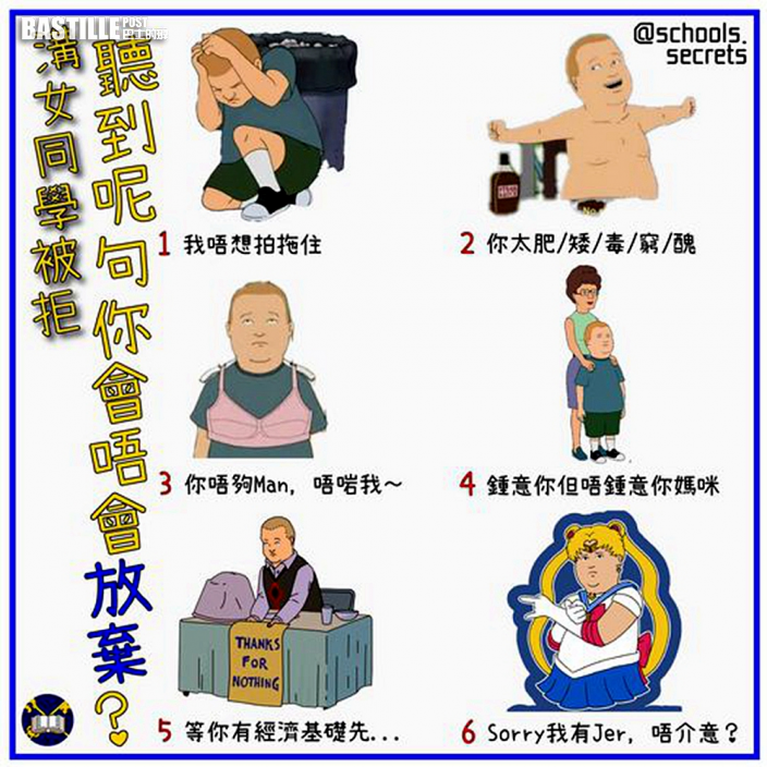 這位自稱來自港島一所男女校的學生網民稱,自己暗戀了一個女同學三年,同對方表白之後第一時間被對方說「其實你係一個好人,但我仍未ready...」此種行為俗稱獲派「好人卡」,意思好明顯,即這名女生婉拒交往。