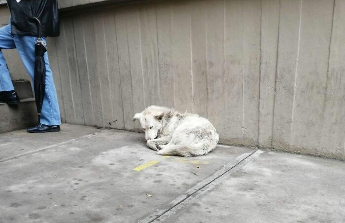 ▼沒想到幾天之後,這隻狗狗遭遇車禍,被人拍到蜷縮在角落無法站立的虛弱模樣。好心人連忙通知動物收容中心,將牠帶到收容所治療。Raúl Castro知道這件事後跟收容所聯絡,正式領養這隻狗狗,並給牠取名為Cachito。