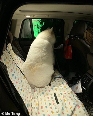 ▼剪毛後的貝貝變化超級大,寵物美容師給牠設計了一個圓潤的造型,再加上牠的毛毛比較厚實,剪完後牠看起來就像一隻北極熊。