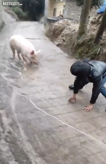 最近內地北方地區受寒流影響,紛紛出現了極低溫天氣,連馬路都因結冰變得十分濕滑。日前,有網民在網上分享一條冬日抓豬的影片,並寫道「冬天抓一隻豬有多難」。