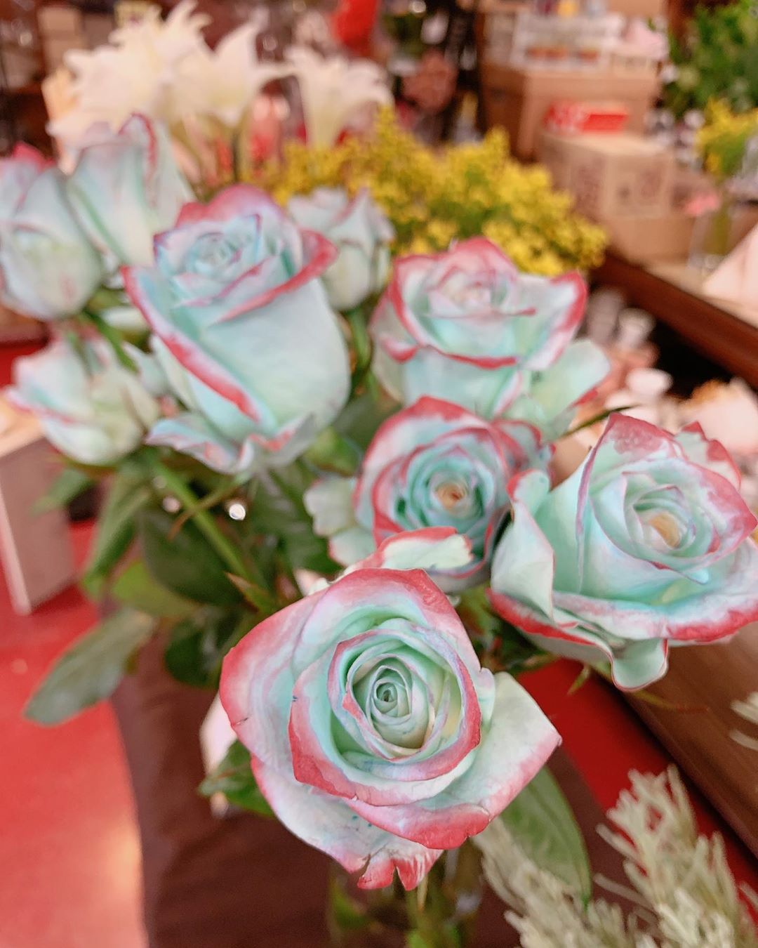 ▼這就是在韓國社群上人氣超高的薄荷霧綠色玫瑰,花瓣邊緣還有一圈薔薇色。兩種顏色融合顯得神秘又浪漫,絕對是送給另一半的最佳選擇。