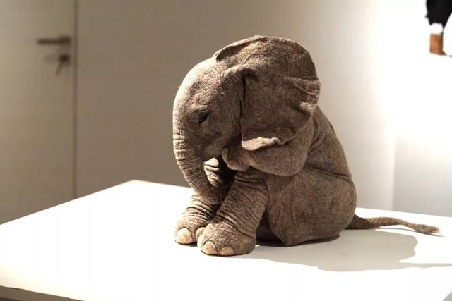▼殷越的羊毛氈作品「想心事」也很有名。那是一隻栩栩如生的小象,正半瞇著眼睛、微微低頭沉思。我們不知道小象經歷了什麼,但牠的心裡似乎藏著不少心事。為了做好小象,殷越花了不少心思:「做這個小象用的羊毛很軟,花了很長的時間去雕刻細節,堆砌出這種褶皺的感覺。」