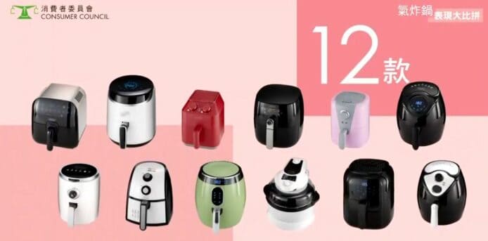 消委會旗下《選擇》月刊近日測試了 12 款售價為 $298 至 $2,080 的氣炸鍋,包括 Harrow HT-AF1200、德國寶 German Poo CKF-215、億世家 ecHome AF1400BK、普樂氏 Proluxury PAF052017、美的 Midea MF20B、飛利浦 Philips HD9743/11、法國特福 Tefal FX202D、Tastec Byte 1898 whz、Recolte RAO-1、TSK AF105、Denki DAF-35,以及伊瑪牌 Imarflex IHF- 26E。