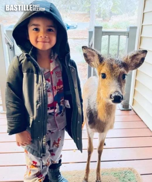 4歲男童Dominic的媽媽Stephanie憶述,她表示當時正從雪櫃裡拿東西,聽到腳步聲後回頭一看,Dominic居然帶著一隻小鹿出現在門前,「我非常驚訝,沒想到他會跟小鹿交朋友,而且還帶回家裡,一時之間不知道該怎麼辦才好。」