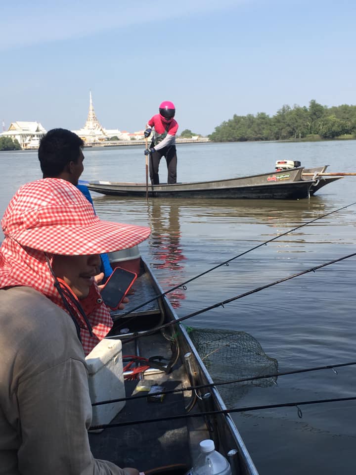 ▼這張照片是在北柳府的帕空河(Bang Pakong River)拍攝的,這條河距泰國曼谷約有1小時的車程。外送員穿著粉色外套,頭戴全罩式安全帽,在小船上努力划槳,應該是下機車後就換乘小船了。