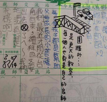 根據三立新聞報導,任教於台北市雙連國小的郭俊成老師,為了增進與學生、家長之間的互動,不但總是額外花上大把的時間在聯絡簿上畫上生動的圖案,面對學生在聯絡簿上的各種煩惱,更是以最真誠的心以插畫回應,讓許多網友都忍不住羨慕直呼:「一定每天都期待寫聯絡簿!」