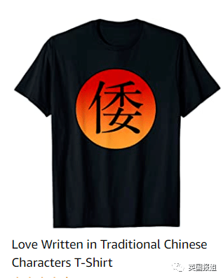 黑色的T恤上印著大大的一個「倭」字!但是品名卻是:繁體字「愛」印花T恤。