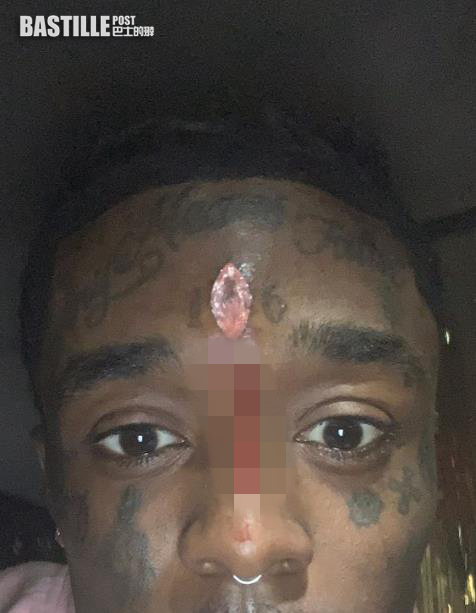 美國饒舌歌手額頭嵌入億元鑽石。(網圖)