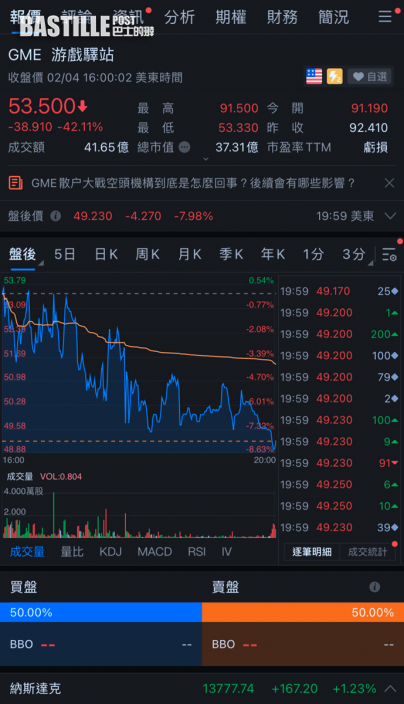 孖展買GME股價大跌遭斬倉 港生呻:輸掉大半學費無力償還