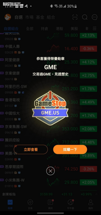 日前,一位學生在連登討論區以「買GME輸咗一大半學費,仲要被富途恥笑」為題發文,指自己以學費做本金孖展在價位400多元時買入GME。不料之後股價大跌,跌至百多元時被股票行斬倉。他大失所望「唔開心到del app......」。