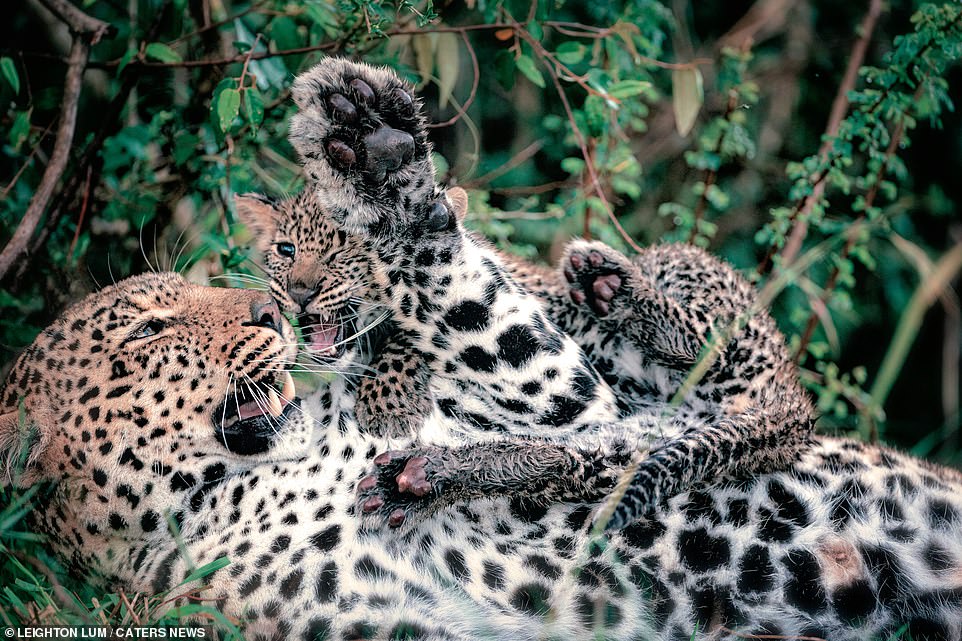 ▼Leighton說:「我很喜歡動物親子之間的互動,這次能拍到豹母子放鬆的時刻,實在太棒了!」