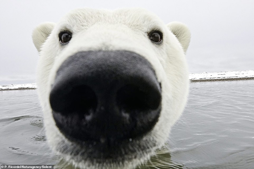 ▼攝影師表示,這些照片是在一艘船上拍攝的。這隻北極熊游過來觀察船上的人,他趁機拍下了珍貴的畫面。