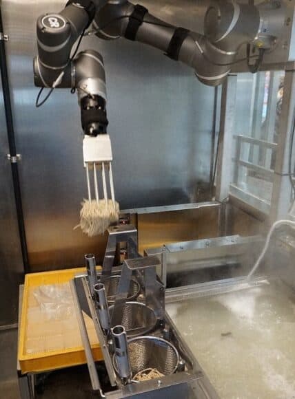 機械人會負責烹煮過程,包括將麵條放入熱水煮熟和拿起瀝乾水份,然後放入冰水內降溫。最後則由人類員工在每碗麵加入上湯、沾醬和其他配料。日本人對蕎麥麵相當熱衷,車站的蕎麥麵店往往會大排長龍,鐵路公司旗下的 JR East Start Up 於是與初創公司聯手,在 2019 年開始開發煮食機械人系統,並且與旗下另一公司 JR East Foods 合作,在他們火車站內的蕎麥麵店引進採用。