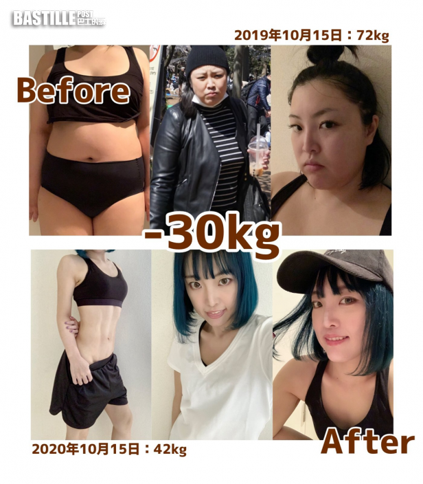 而到了2020年10月,也就是一年之後,她的體重卻狂降至42公斤,整整減掉了30公斤,不僅圓臉瘦成尖臉,還擁有完美的腹肌和馬甲線。她也曝光了自己在整個減肥過程中的對比照片,如今真是fit到爆。
