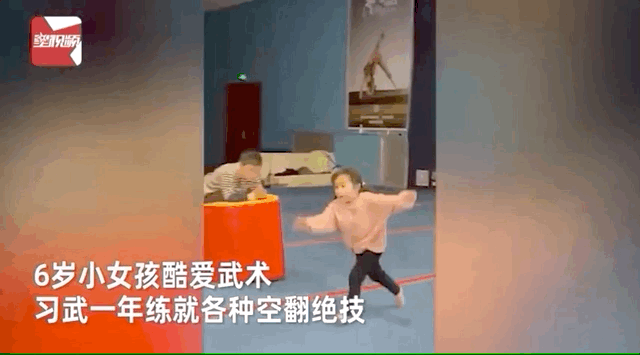 身手不凡!6歲萌妹玩轉「高難度空翻特技」 掀衣秀8塊腹肌:未來武林第一女高手