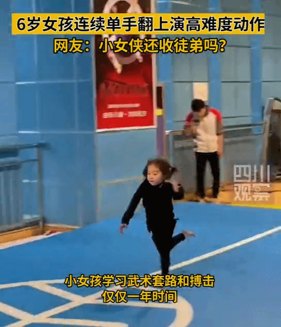 教練陳大平介紹,相對於武術、跆拳道,特技的技巧要求起步是非常高的,首先需要身體一定的協調性,需要更強的身體爆發力。楊紫璇的訓練程度、接受程度,在一萬個人裡面,可能能找到這樣一個孩子。她的這種吃苦程度特別優秀,從上課到下課都在運動。「教練手把手教學,她可能就半個小時就學會,其他人學可能需要幾天或者一個星期或者半個月。